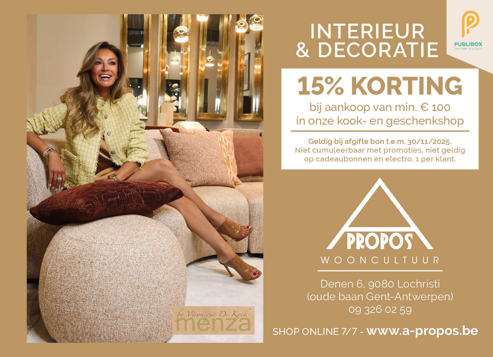 15% korting bij aankoop van min € 100 in onze kook- en geschenkshop