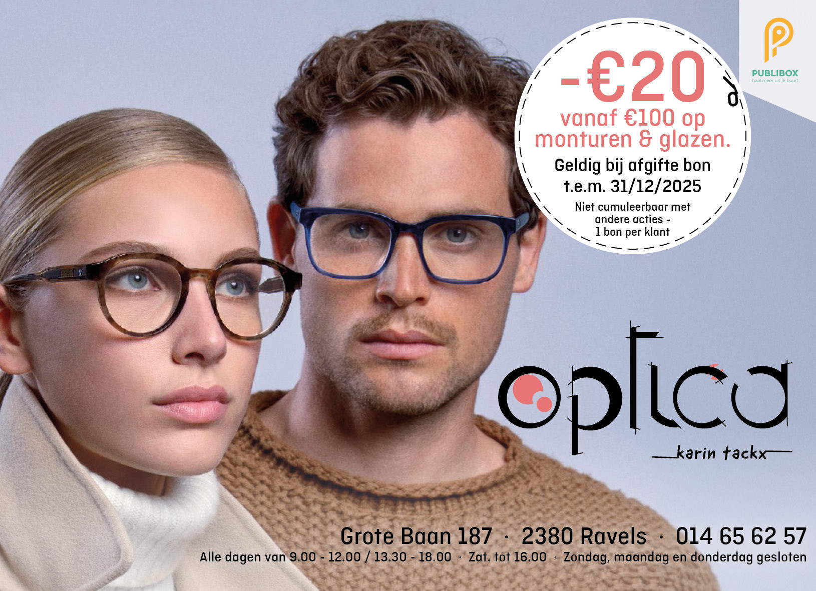 € 20 korting vanaf € 100 op monturen en glazen